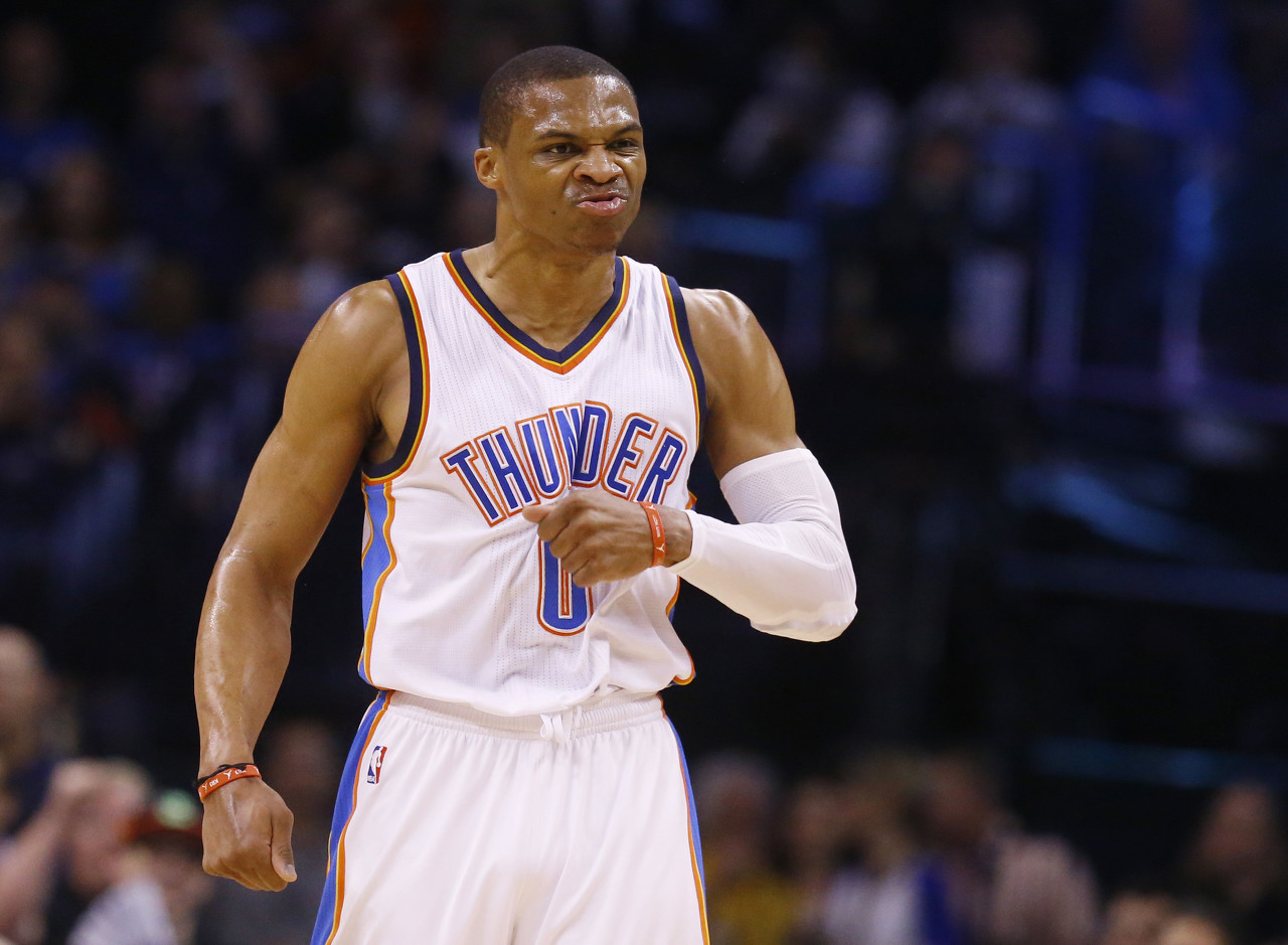 2017年4月10日,威少面对掘金32中17,三分12中5,罚球11中11,爆砍50分16篮板10助攻