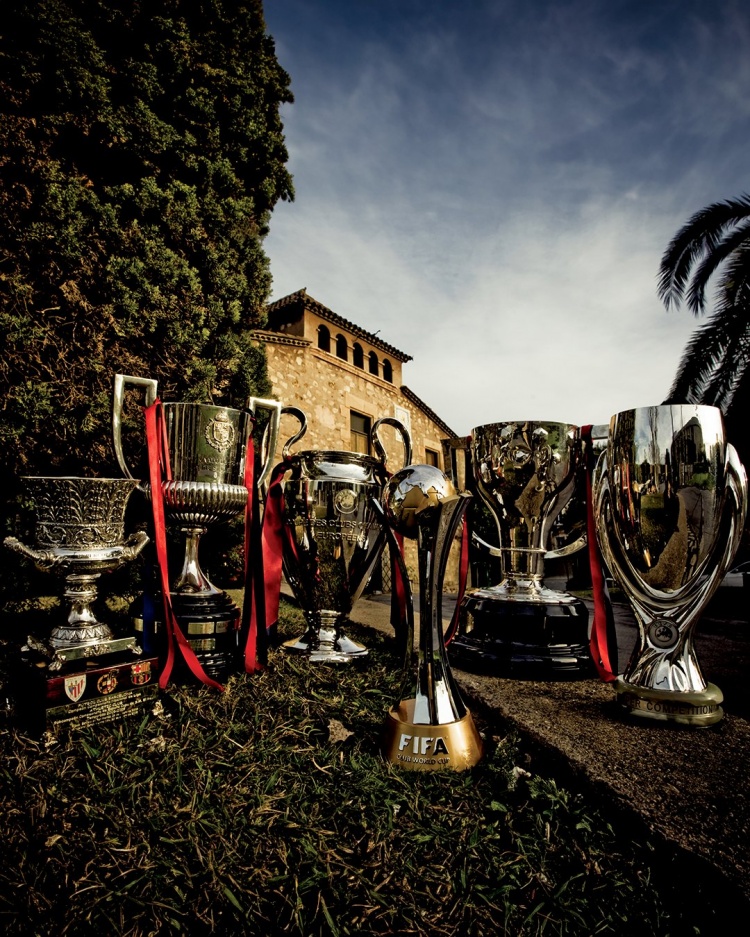 巴萨官方社媒晒奖杯照片,纪念达成六冠王15周年