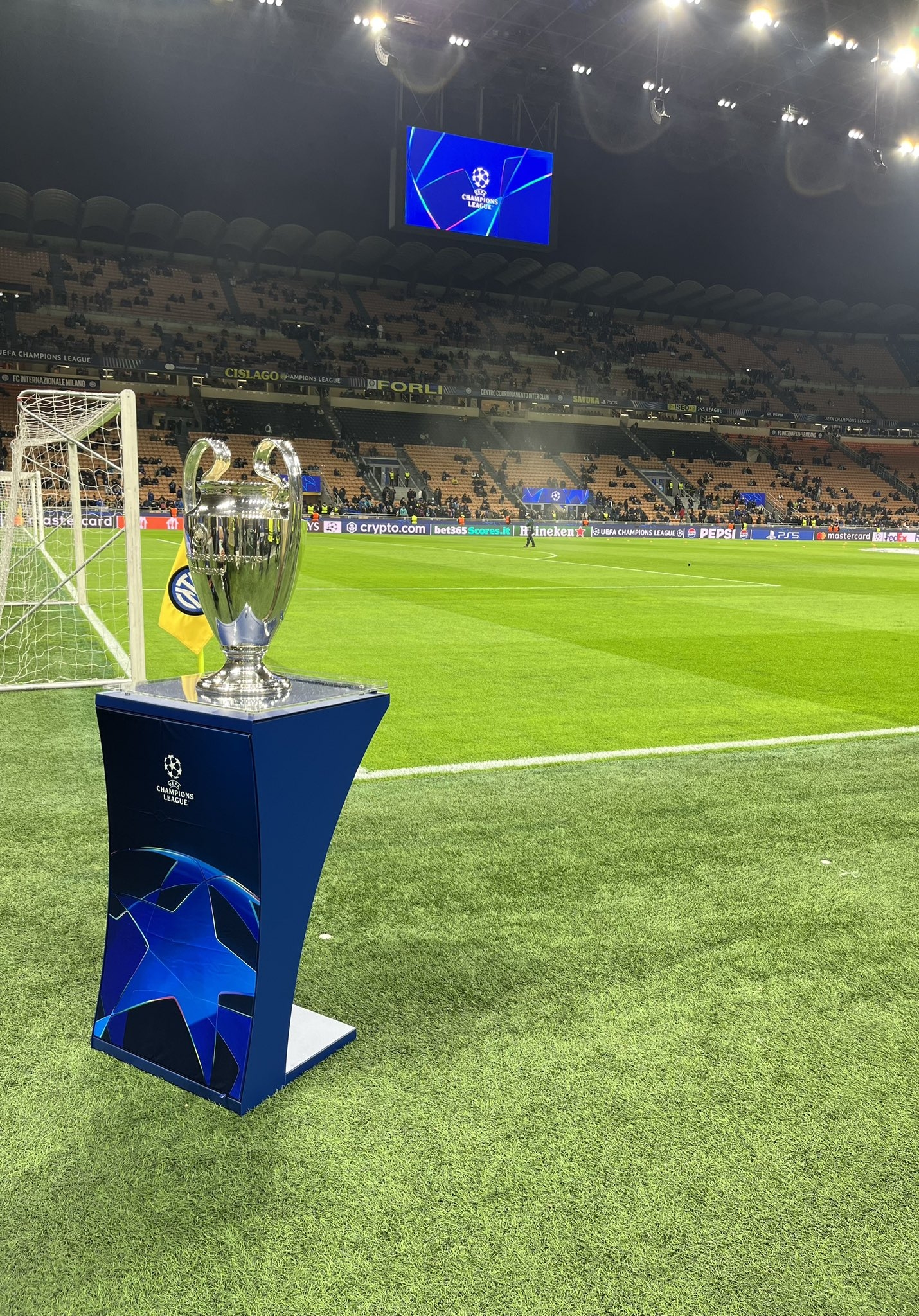 03月12日讯 欧冠1/8决赛次回合,国米主场迎战费耶诺德,赛前国米在主场展示欧冠冠军奖杯。