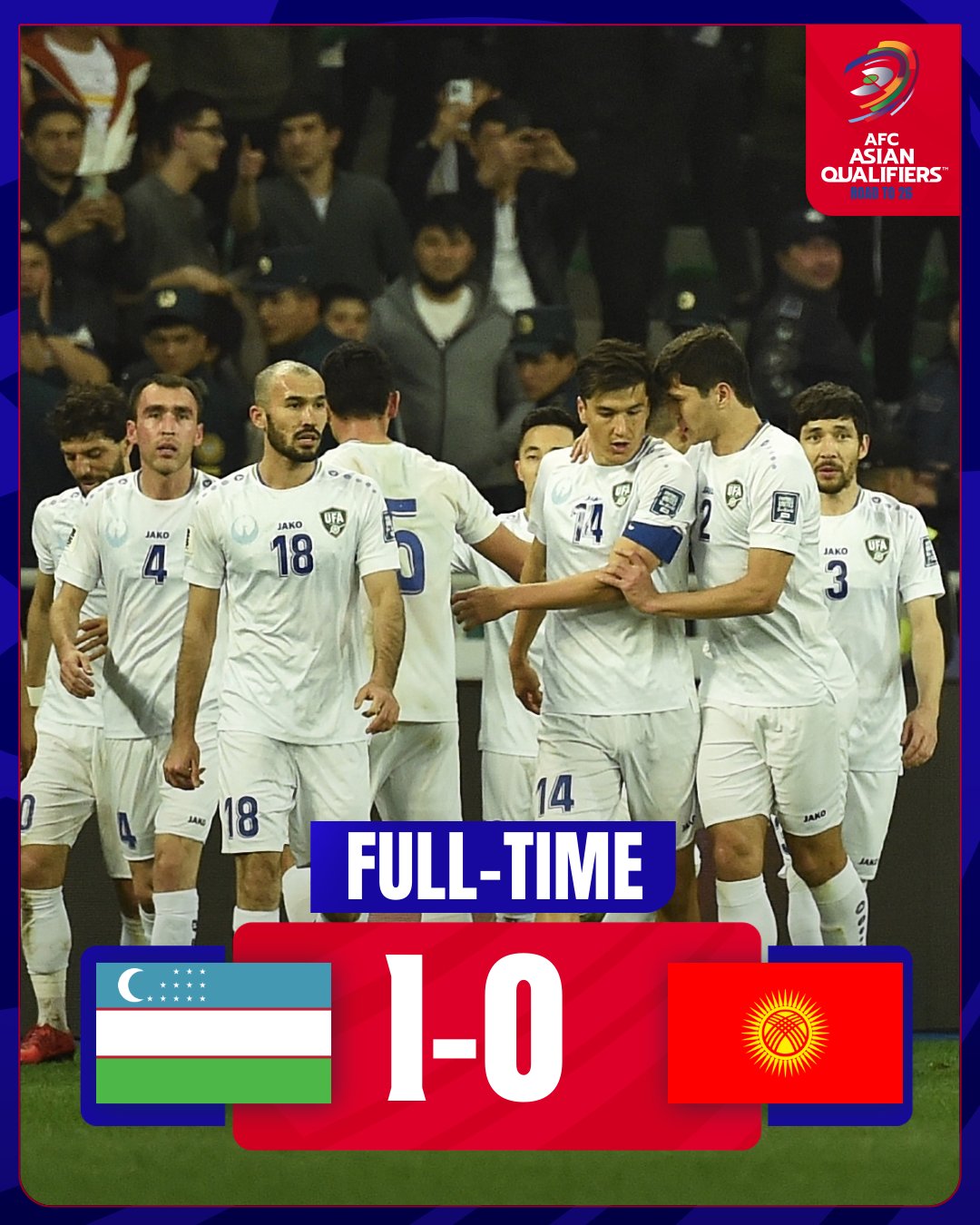03月21日讯 乌兹别克斯坦1-0击败吉尔吉斯斯坦,在18强赛还剩3场的情况下,5胜1平1负积16分排名小组第二,距离队史首次进世界杯仅一步之遥。